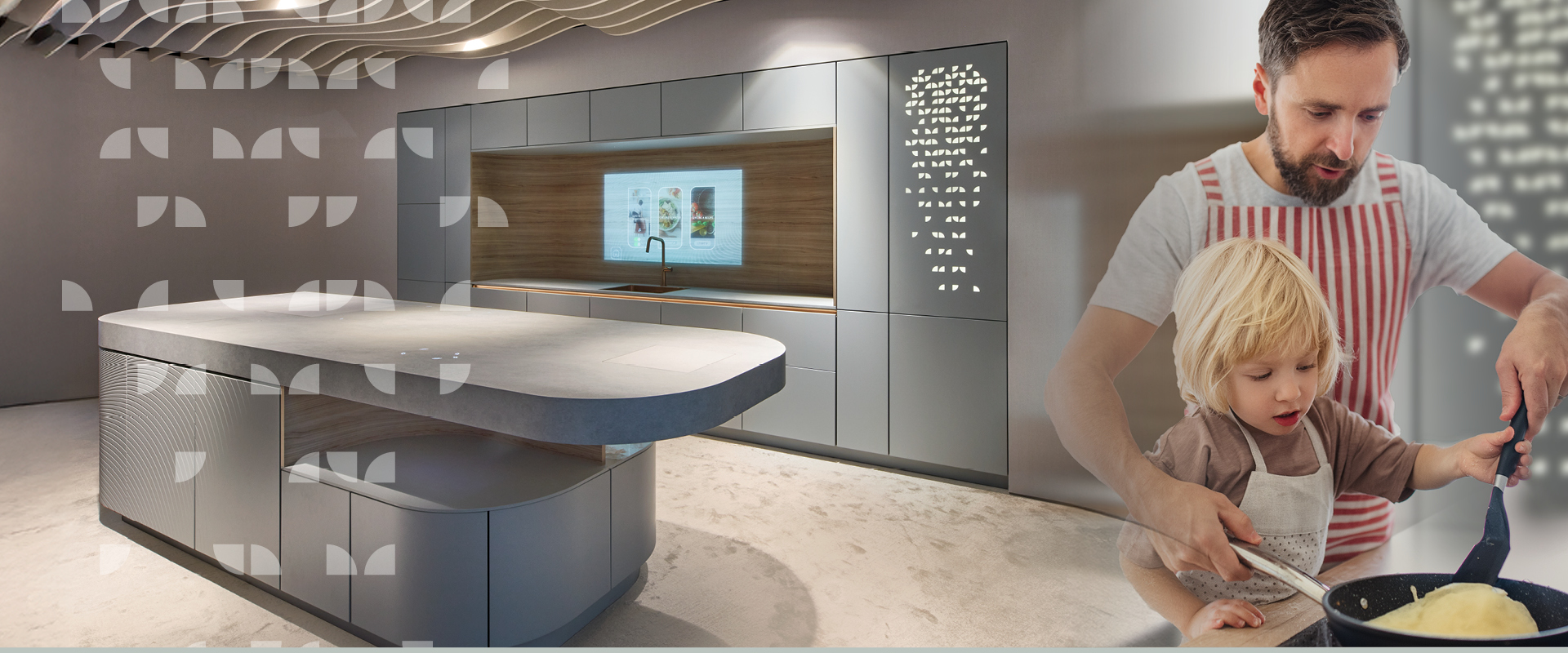 In ihr verbinden sich nahtlos die Designideen von morgen mit smarten, zukunftsweisenden Technologien aus der Automobilwelt – für einen noch komfortableren Küchenalltag.